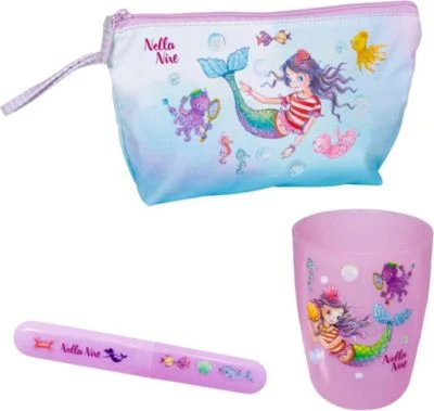 Perfekt gerüstet für die nächste Übernachtungsparty! Mit dem bezaubernden Reiseset Nella Nixe von Spiegelburg sind die kleinen Glitzer-Fans bestens ausgestattet: In dem Set enthalten ist ein Zahnputzbecher, eine Zahnbürstendose und ein kleines Täschchen. Das Täschchen begeistert mit einem niedlichen Print und kann mit dem Zipper am Reißverschluss einfach auf- und zugemacht werde.