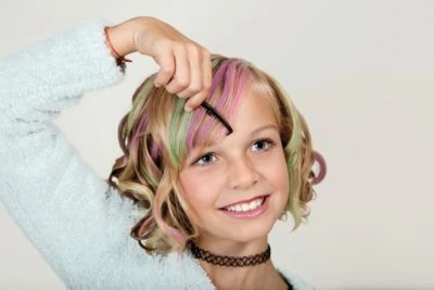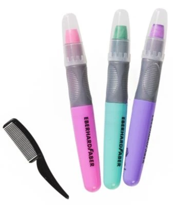 Einfache Anwendung: Haarkreide auf trockene Haarsträhne aufbringen und mit dem Kamm in der Strähne durch Kämmen