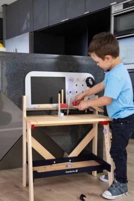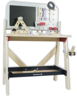 Mit der vollausgestatteten Werkbank von EverEarth werden die Kids zu echten Handwerkern! Werkbank von EverEarth mit Tafel, Schrauben und Werkzeugen 32,8(L) x 78(B) x 65(H) cm aus Buchenholz ab 3 Jahren geeignet Zur großen Werkbank von EverEarth gehören eine Tafel, Werkzeug und Schrauben aus Holz. Für Kinder ist somit stundenlanger Spielspaß vorprogrammiert! Die Werkbank fördert zudem die Feinmotorik, die Kreativität und die Phantasie der Kleinen. Nachhaltig: EverEarth legt bei seinen Produkten größten Wert auf die Nutzung von FSC® zertifiziertem Holz und wasserbasierten Farben. Alle Produkte haben zudem Verpackungen aus Recyclingmaterial.