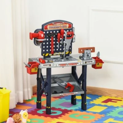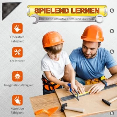 Das Werkbank-Set enthält 55 verschiedene Werkzeuge wie Hammer, Schraubenschlüssel und Bohrmaschine, die Kinder stundenlang unterhalten und ihre Geschicklichkeit und Hand-Augen-Koordination fördern. Der zertifizierte Kunststoff mit abgerundeten Kanten gewährleistet die Sicherheit beim Spielen. Das Set kommt in einer Geschenkbox, es ist ein ideales Geschenk für Ihre Kinder.
