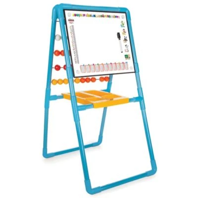Die Standtafel lässt auch schon die Kleinen einmal Lehrer sein und bietet nicht nur einen großen Spaß, sondern auch noch einen Lerneffekt für Kinder aller Altersstufen. Ihr Kind kann seiner Kreativität freien Lauf lassen und die Tafel zum Schreiben, Malen oder Spielen nutzen. Die Tafel kann auf der einen Seite mit Kreide, auf der anderen mit mitgeliefertem Stift und Radiergummi genutzt werden. Die Seite ist abwaschbar und daher schnell wieder verwendbar. Auf der anderen Seite sind 5 Reihen mit Zählringen angebracht, ebenfalls sind alle Zahlen von 0 bis 9 abgebildet, so lässt sich das Rechnen spielerisch erlernen. Im Ablagekorb dazwischen können Stifte und Radiergummi gelagert werden.