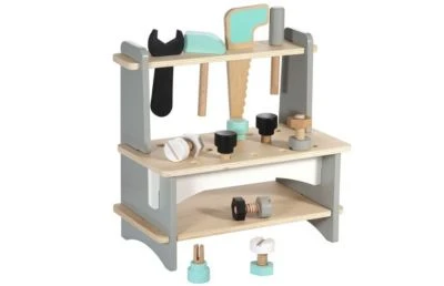 • Werkbank aus Holz zur Förderung der Motorik und des Spielspaßes von Kleinkindern Sicher verpackt, teilmontiert und in wenigen Minuten aufgebaut