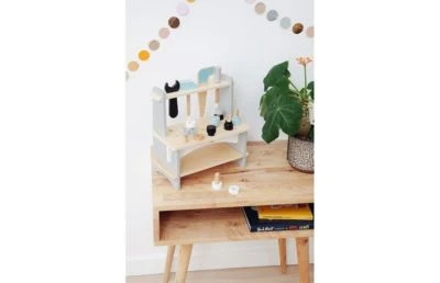 Die Werkbank von Kindsgut ist die perfekte Unterstützung zur Förderung der kognitiven Feinmotorik Deines Kindes und dient vor allem dazu, den Spielspaß zu fördern. Mit dem dezenten Design lässt sich die Werkbank stilsicher in jedes Wohnkonzept integrieren. Die aus Holz gefertigte Kindsgut Werkbank passt ideal zum bewährt reduzierten Look moderner Einrichtungsstile. Durch das Spielen mit der Werkbank wird Dein Kind dabei unterstützt, alleine spielen zu lernen. Die dezenten Farben und die kindliche Form machen das Spielzeug zur optimalen Ergänzung und zu einem eindrucksvollen Hingucker in jedem Zuhause.