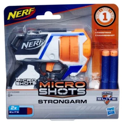 – NERF MicroShots Strongarm, 2 Elite Darts