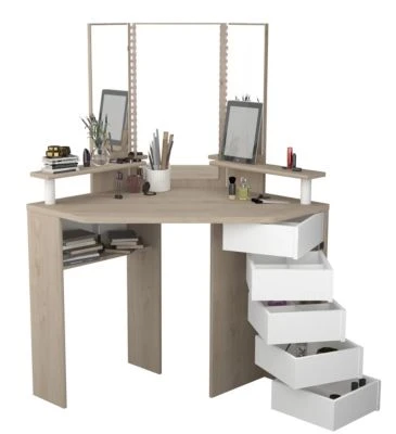 Lieferumfang: Eck-Schminktisch, Montagematerial und Montageanleitung (ohne Hocker und Dekoration)
