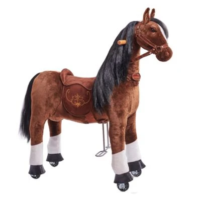 • Mit PONNIE hat das Kind hat das Gefühl, als würde es auf einem echten Pferd reiten. Das Pferd läuft durch Auf- und Absetzen im Sattel los. Die Reitrichtung bestimmt der Reiter durch Drehen der Halter.
