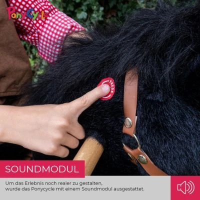 Um das Erlebnis noch realer zu gestalten, wurde das Ponycycle „Black Beauty“ mit einem Soundmodul ausgestattet. Die Pferdegeräusche lassen das Reiterlebnis noch echter wirken!