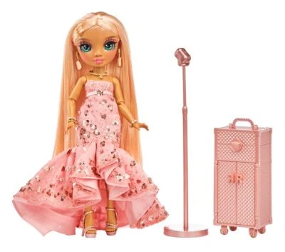 Für alle Mode-Fans und Styling-Freund*innen wird es jetzt musikalisch! Denn die bezaubernden Rainbow High Puppen betreten die Bühne und kommen mit einer Bühnenshow in die Kinderzimmer. In ihren tollen Outfits beeindruckt die Rainbow High Puppe und für die Show kann sie sogar auf den beiliegenden Puppenständer gestellt werden. Die langen Haare eignen sich für die unterschiedlichsten Styling-Varianten und die beweglichen Gelenke machen die Mode-Puppen zu tollen Spielebegleiterinnen. Die Zubehörteile und 2 komplette Outfits werden alle kleinen und großen Rainbow High Fans begeistern.