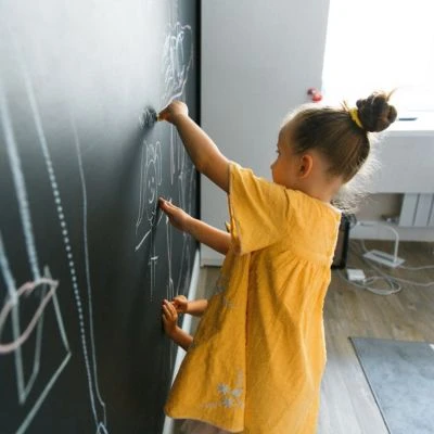 • Zum Bemalen: Mit Kreide kann die Tafelwand beschrieben werden – Einfach mit feuchtem Schwamm säubern