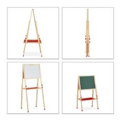 Fördern Sie die Kreativität und Lernbereitschaft Ihrer Kleinen mit dieser doppelseitigen Standtafel für Kinder. Sie ist höhenverstellbar und passt sich damit genau der Größe Ihres Kindes an. Die Kindertafel verfügt über 2 großzügig bemessene Malflächen. Malen, Schreiben und Rechnen sind sowohl auf dem Whiteboard als auch auf der klassischen Kreidetafel möglich. Eine praktische Ablagefläche in knalligem Rot für Stifte, Kreide und Schwamm rundet diese tolle Maltafel ab.
