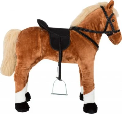 Dieses braune Pferd schließen Kinder sofort in ihr Herz. Durch die angenehme Sitzhöhe von 50 cm besteigen die Kleinen ihr Pferdchen in Windeseile. Jetzt müssen nur noch Zügel und Steigbügel perfekt sitzen, dann kann der erste Ausflug im hauseigenen „Reitstall“ losgehen. Für optimalen Reitspaß sorgt das originalgetreue Wiehern beim Druck auf das Ohr. Ein perfekter Begleiter, um das Rollenspiel zu fördern und der Kreativität freien Lauf zu lassen. Wer hat Lust auf einen Ausritt?