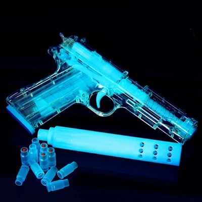Lieferumfang: Pistole * 1, leuchtender Schalldämpfer * 1, unteres Vorratsmagazin * 1, leuchtende Hülle *32, weiches Geschoss *100