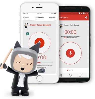 Wie für alle Kreativ-Tonies, muss du dir auch für den Dirigent ein kostenloses Toniecloud Kundenkonto einrichten und schon kannst du deine Geschichten, Lieder, Nachrichten, vorhandene Hörbücher und die wildesten Hörabenteuer mit ihm verknüpfen.