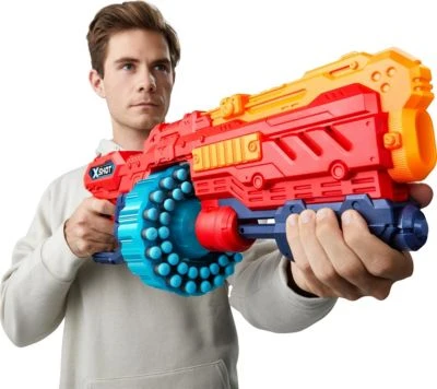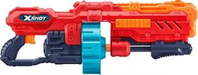 Blaster-Action auf einem neuen Level! Mit diesem X-Shot Turbo Advance Blaster kommt ein Kraftpaket für Battle-Spiele. Der Blaster hat eine Kapazität für 40 Darts und kann aus einer Entfernung von bis zu 24 Metern gleich mehrere Ziele treffen. Geeignet ist der Blaster für Outdoor-Spielespaß. Dabei wird das Tragen eines Augenschutzes empfohlen.